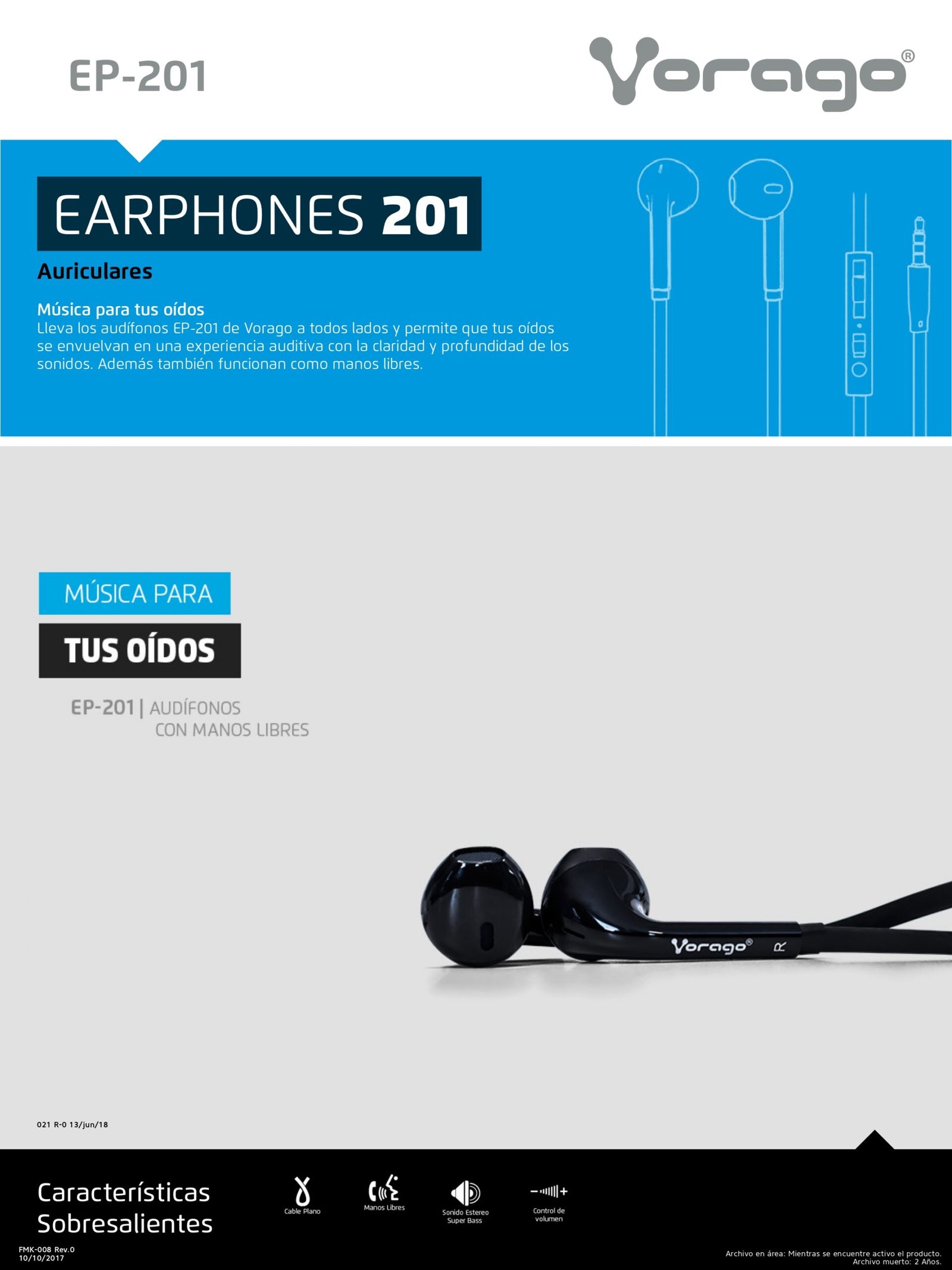 Audífonos Vorago manos libres 3.5mm ctrl vol. Y micrófono negro