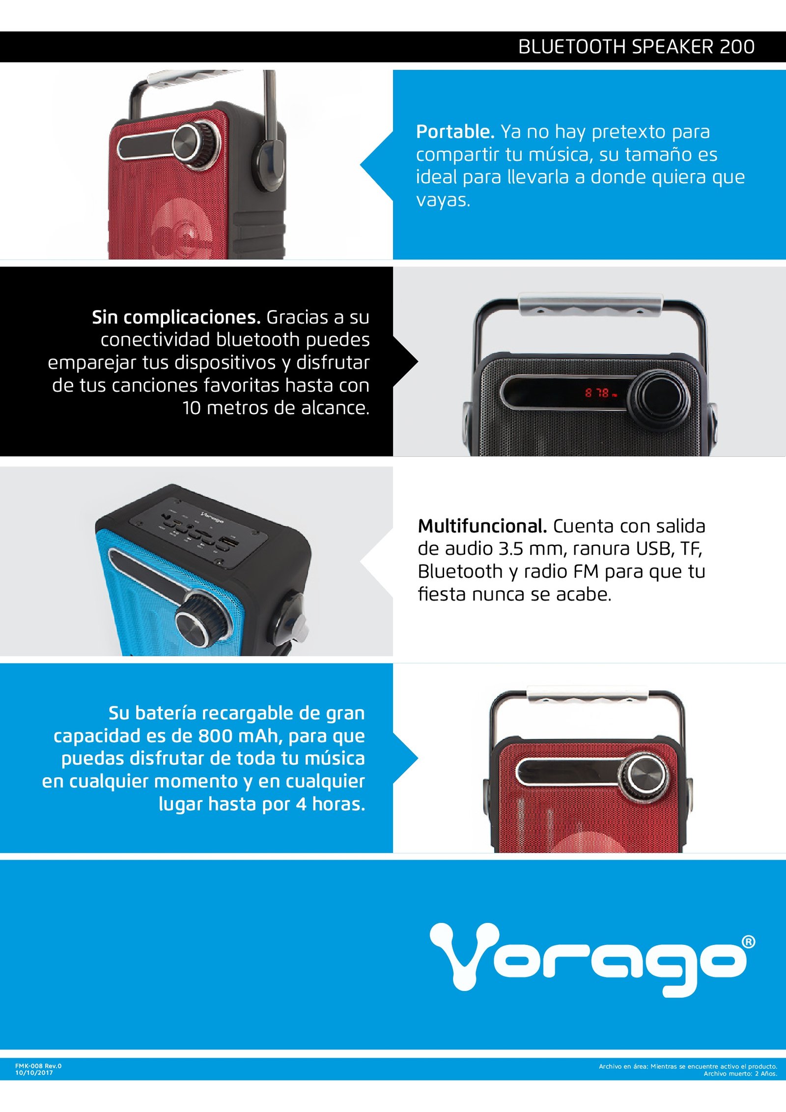 • Portabilidad y fiesta: Que no te engañe su tamaño, cuando sincronices tu smartphone vía bluetooth a la bocina BSP-200 de Vorago te sorprenderá el gran sonido que emiten. Gracias a su tamaño compacto es perfecta para llevarla a todos lados y así animar tus fiestas con las mejores canciones de tu playlist.