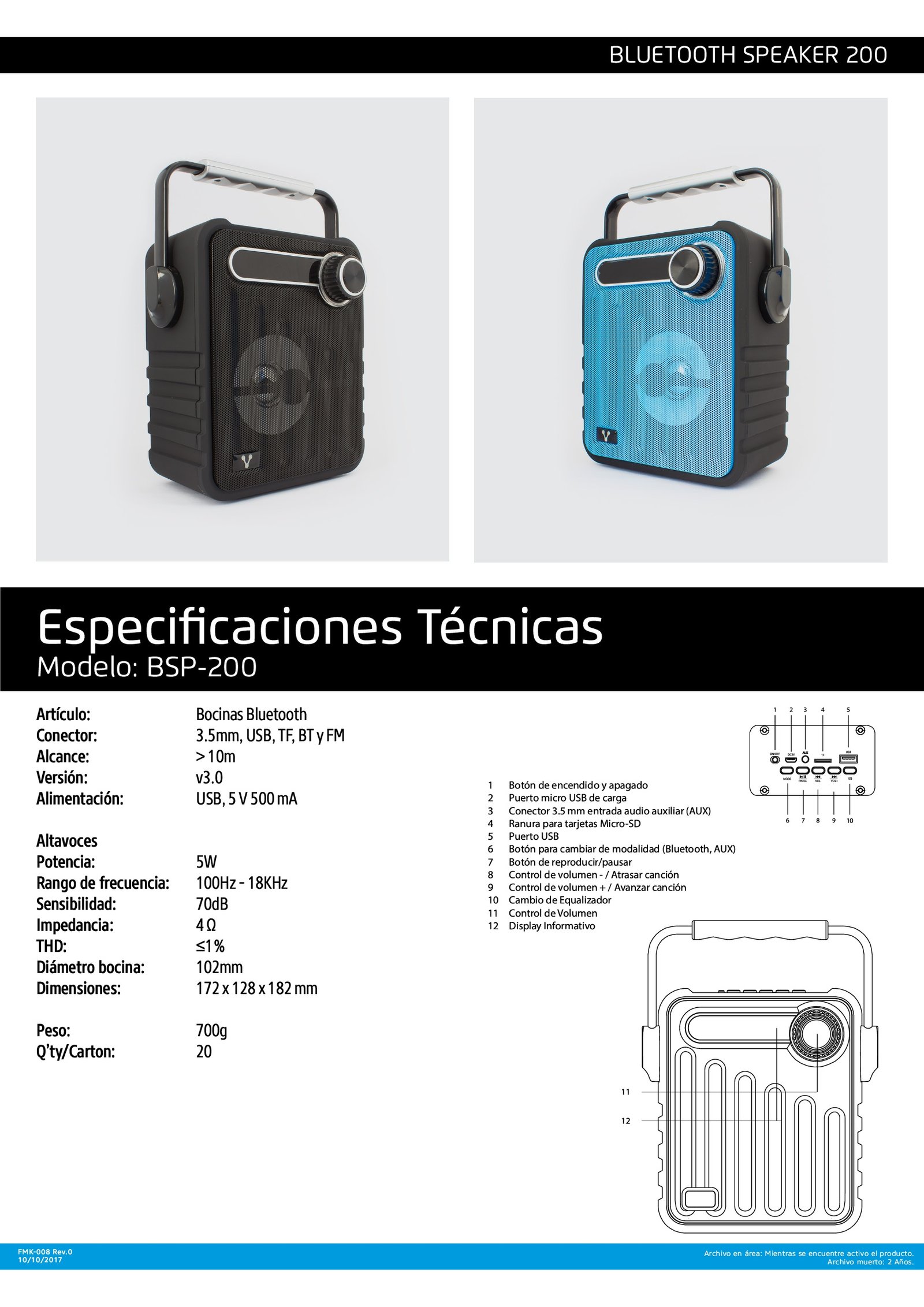 • Portable: Ya no hay pretexto para compartir tu música, su tamaño es ideal para llevarla a donde quiera que vayas.
