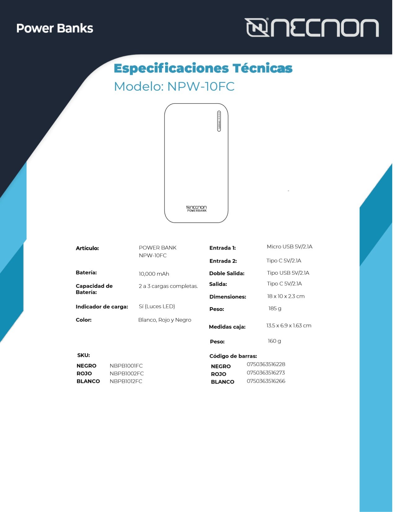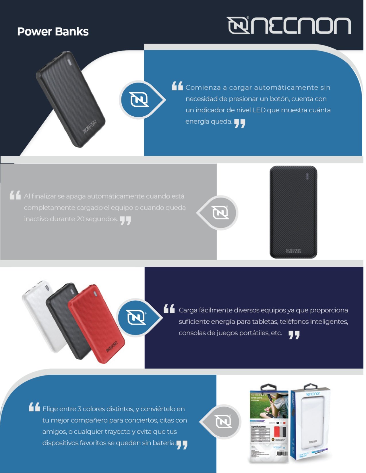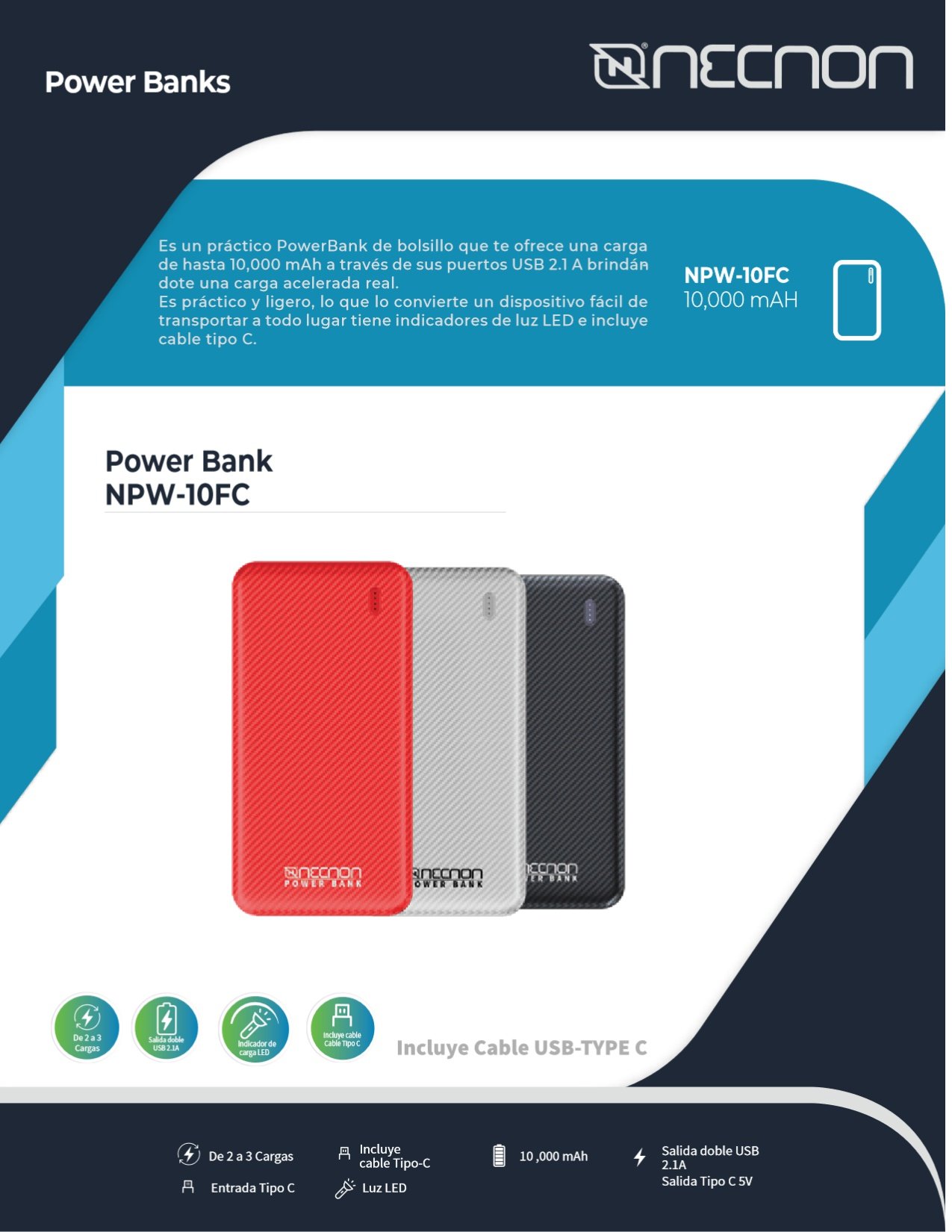 Cargador Portátil Necnon Power Bank NPW-10FC- Inalámbrico- 10.000mAh- Negro