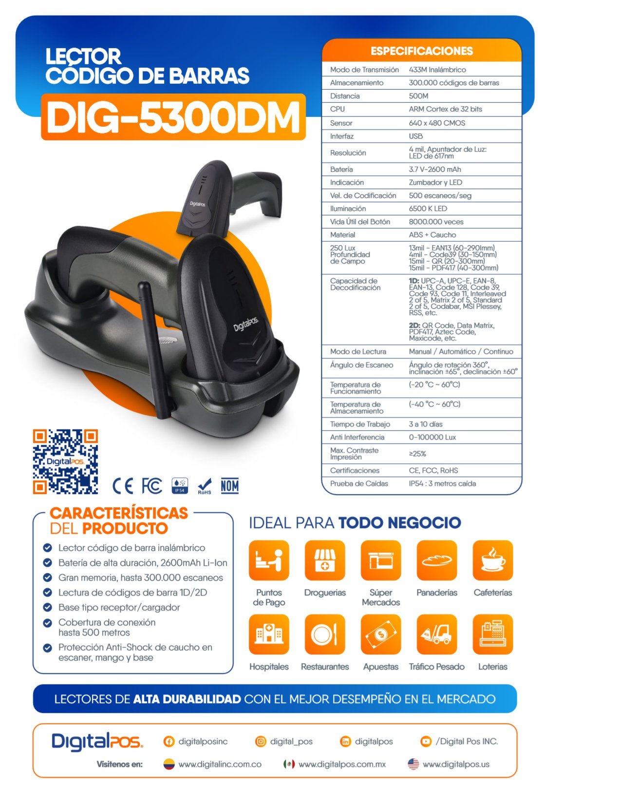 Lector de código de barras inalámbrico Digital Pos 5300DM
