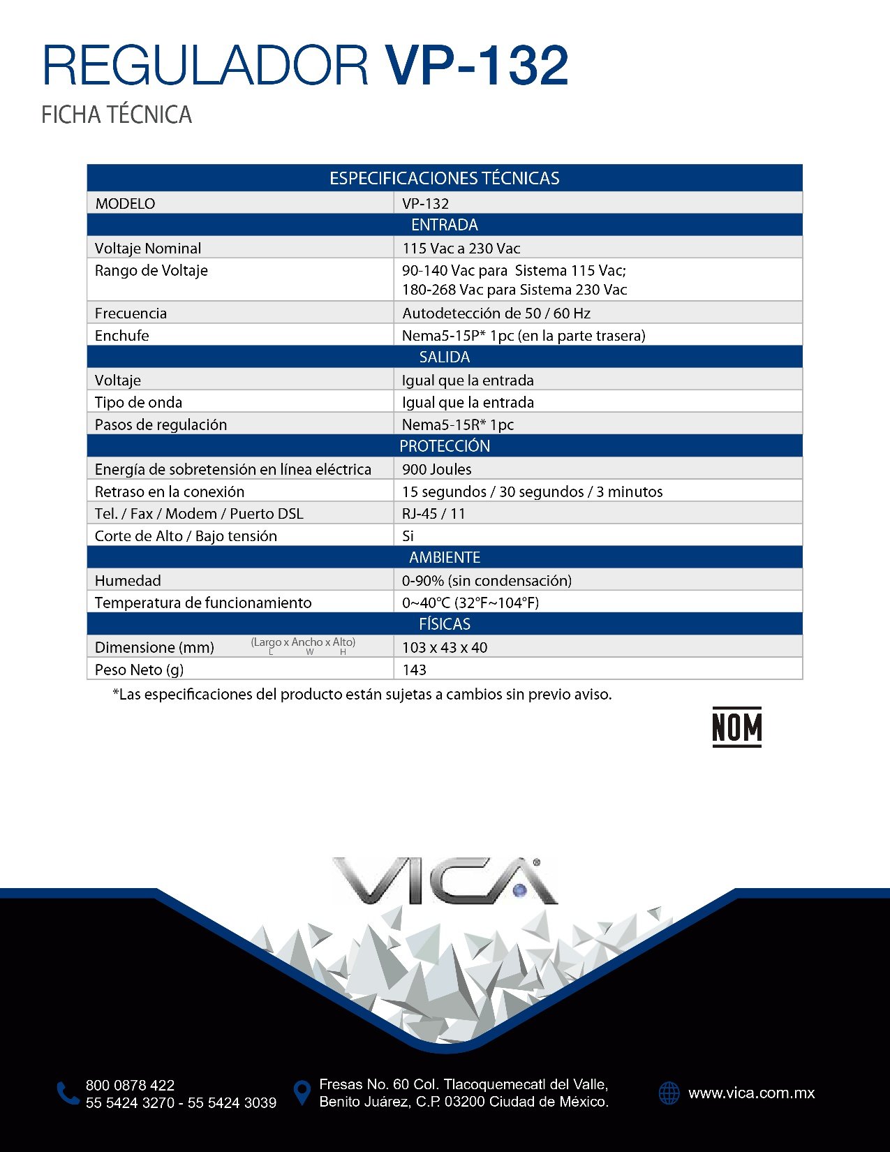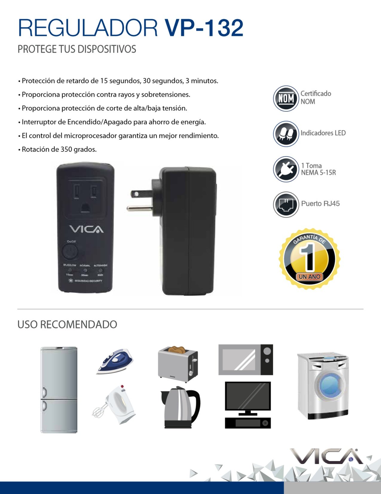 Vica Supresor de Picos VP-132- 1 Contacto- 900 Joles 1800W/2500VA